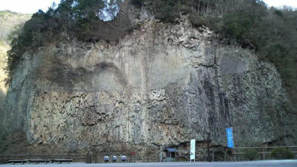 御嶽山の大噴火によってできた、高さ72m、幅120m、の溶岩の絶壁なんですって。