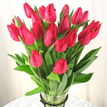 みんなで丹精こめて育てていた展示場の庭のチューリップを切花にして花瓶に生けていたのですが、夜になってうなだれてしまい、翌朝見たらビックリ!