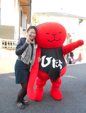 日進梅森会場内を岐阜県飛騨高山のキャラクター”ひだっち”が歩いていた。