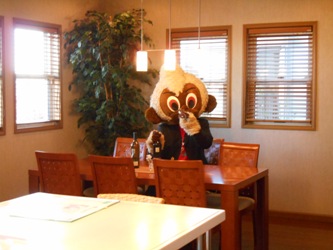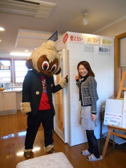 今日、日進展示場に飛騨のキャラクター”お猿のくう”