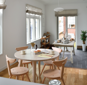 スクリーンドポーチにテーブルを設置すれば、カフェのテラス席